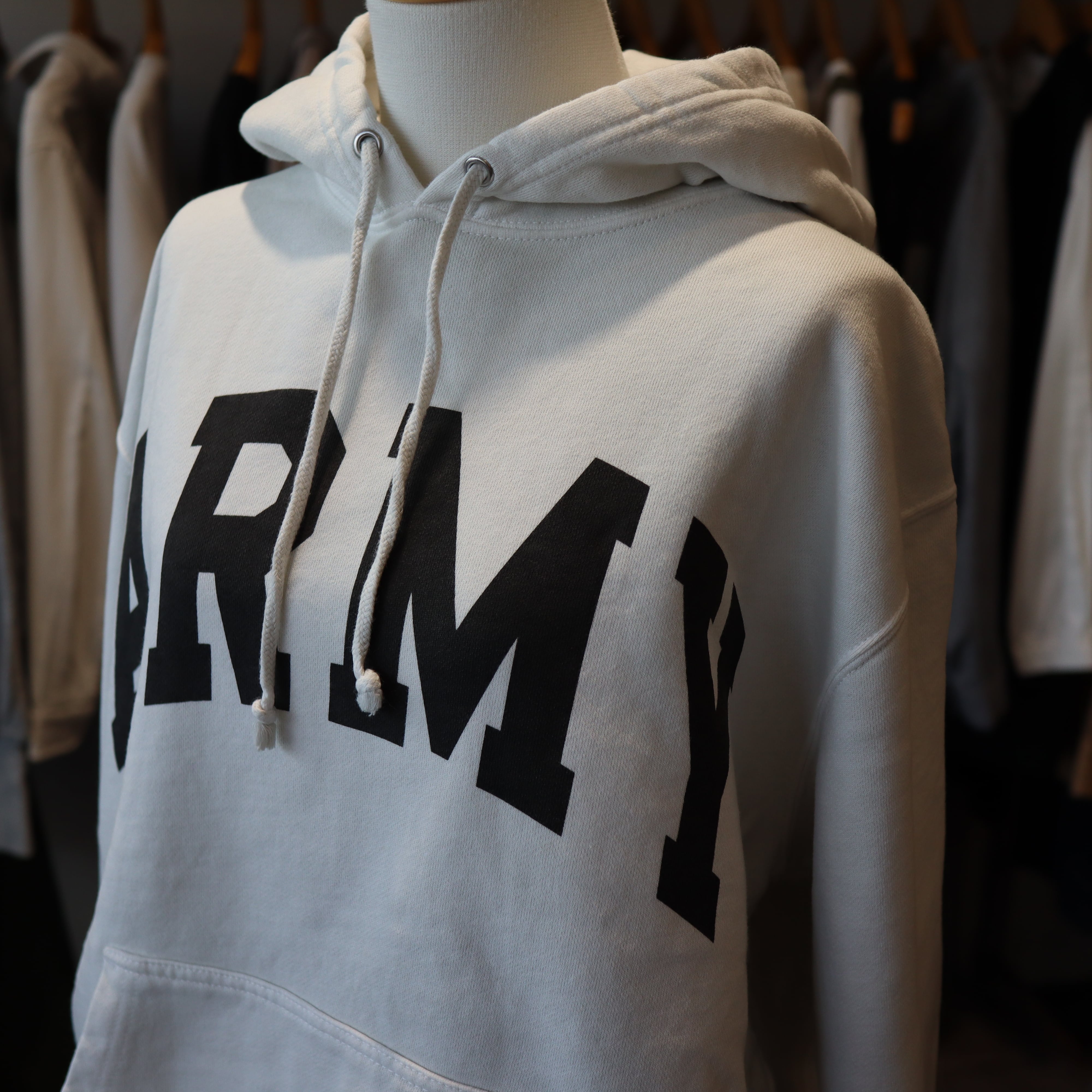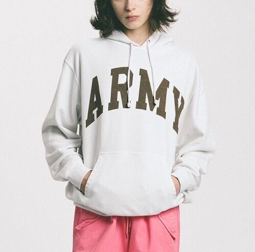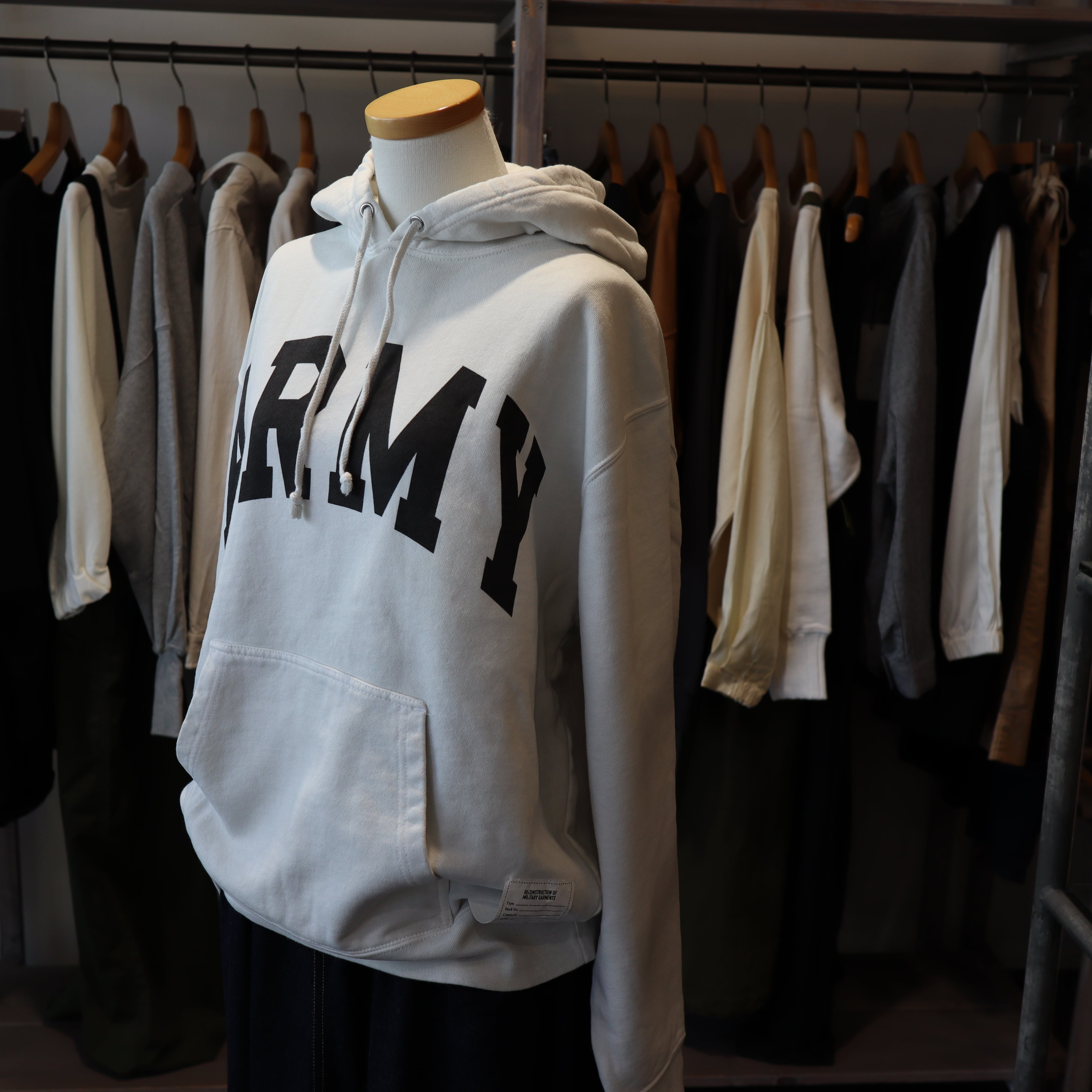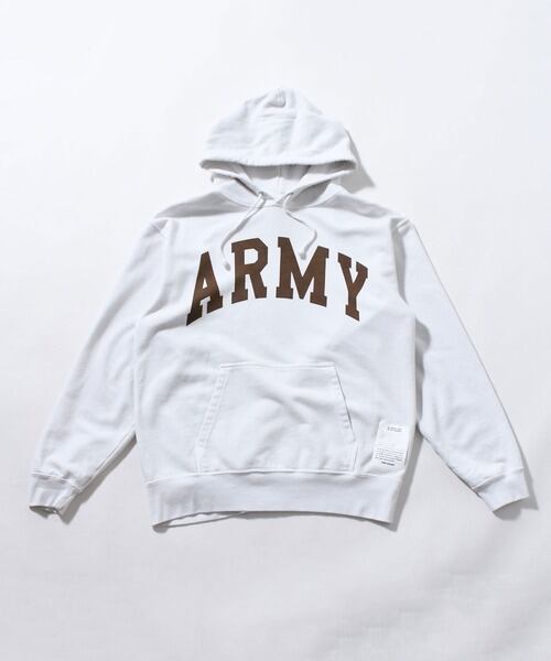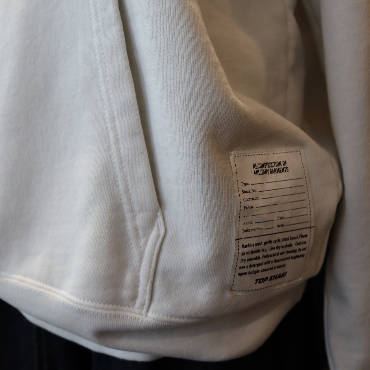 「JOHN BULL TK251C09」JHON BULLのユニセックスミリタリーラインの「TOP KHAKI」のプルオーバーパーカーです。古着のようなARMYのロゴやわざと見えるように付けたラベルがいい雰囲気です。中肉のスウェット素材に製品加工を施してヴィンテージの洗いざらし感と色合いを感じる様に仕上がっていてシンプルながらも存在感があります。とても柔らかく重くないので着心地は◎です。チョークのようなくすんだホワイトの色合いもいい感じです。Sサイズでも女性はゆったり着ていただけます。メンズサイズをたっぷり着る感じでしたらMサイズでも、画像はSサイズです。