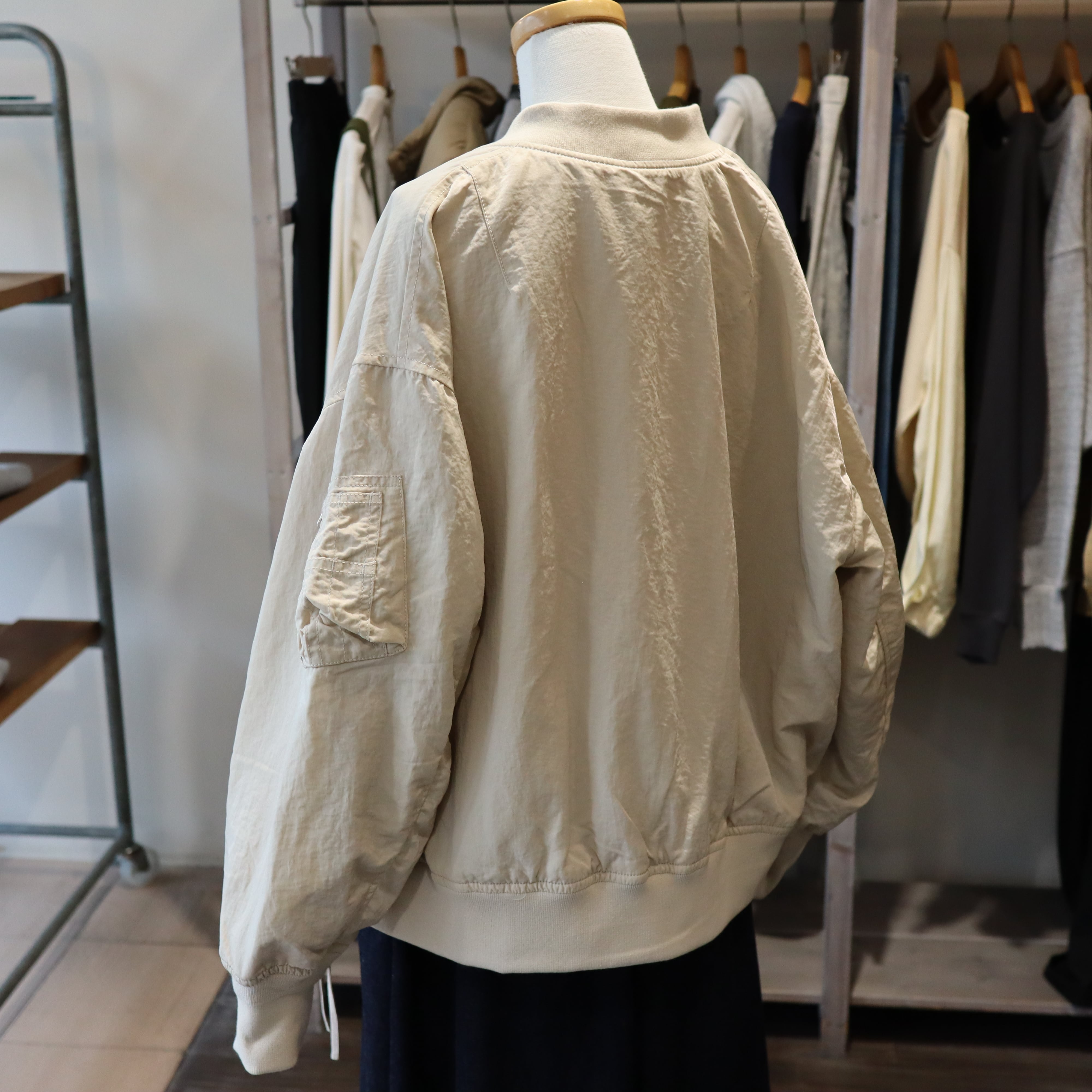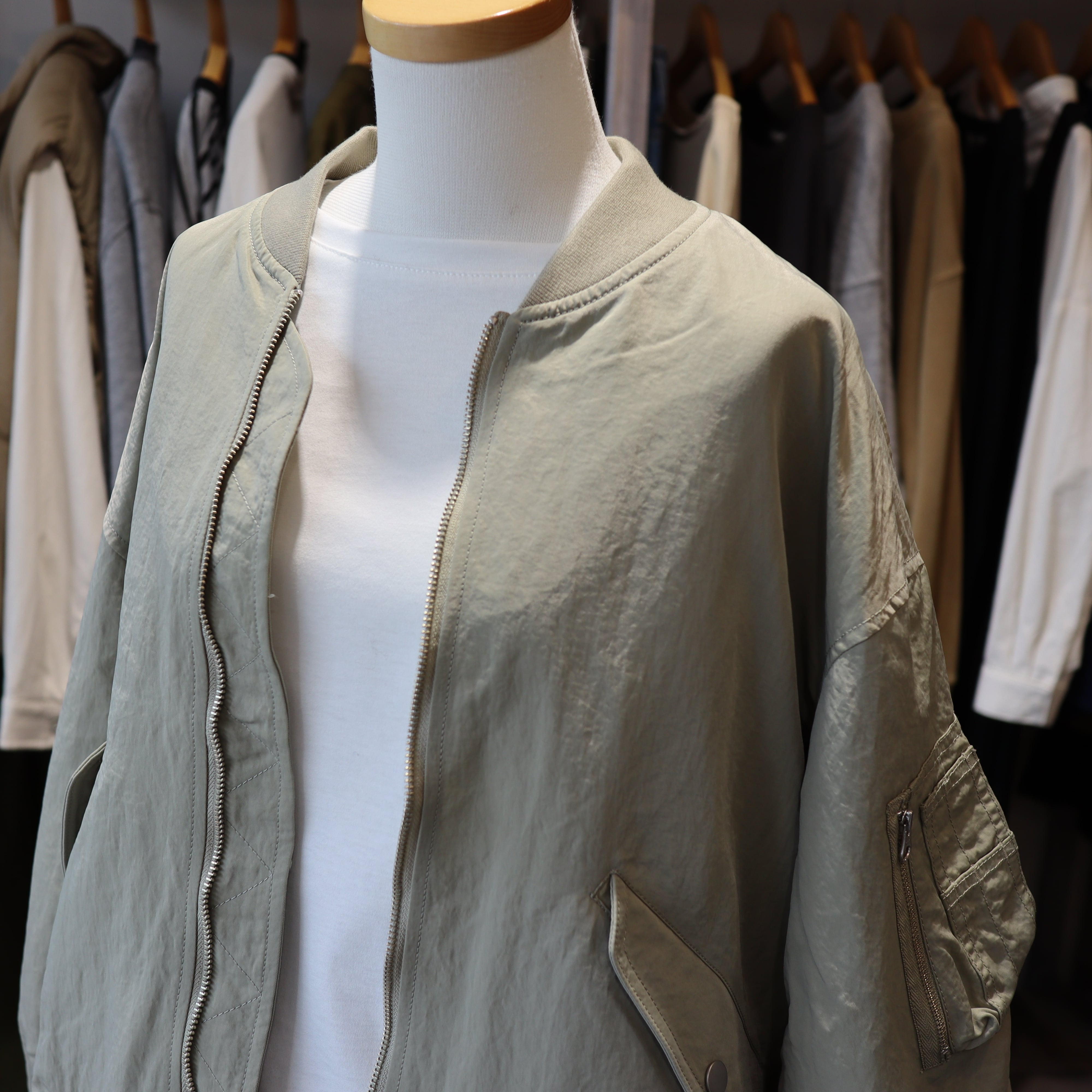 「JHON BULL JL254L03」毎年人気のナイロンミリタリーブルゾンです。表面感のあるナイロンツイルで程良く張りが有り柔らかく軽いので着心地◎、中くらいの厚さで裏地付きですが中綿では無いので年間を通じてフル活用出来そうなアイテムです。両脇はZIPデザインなので開けてインナーをみせても可愛いです。ルーズなデザインなので中にスウェットやニットなども合わせられそうです。