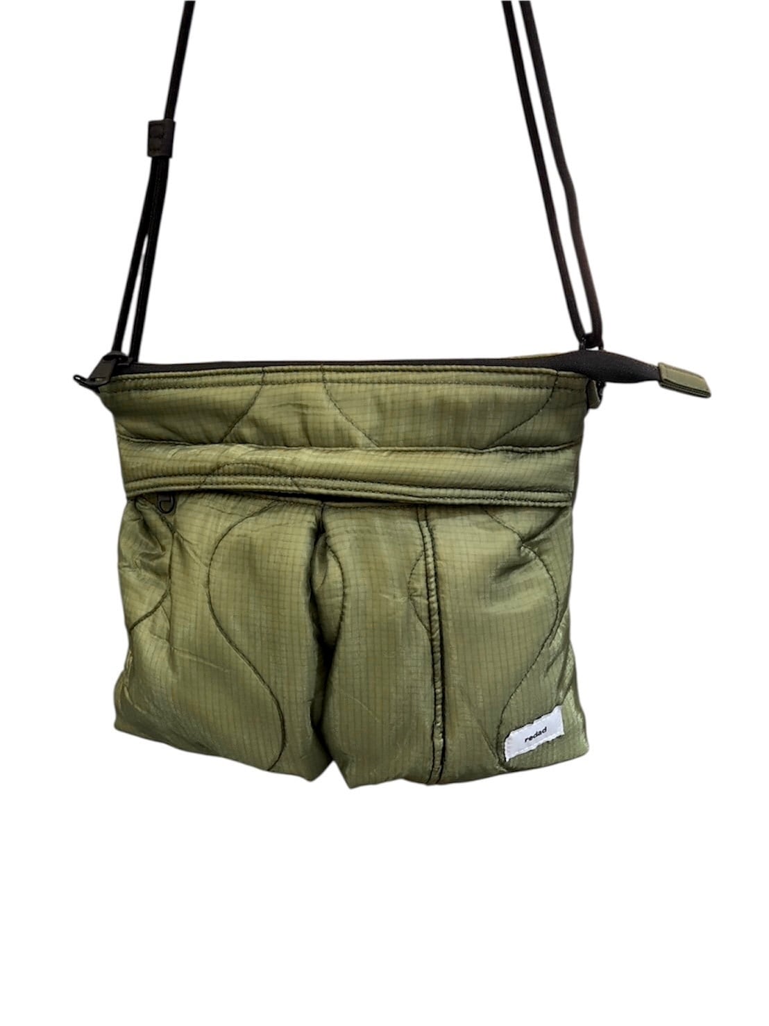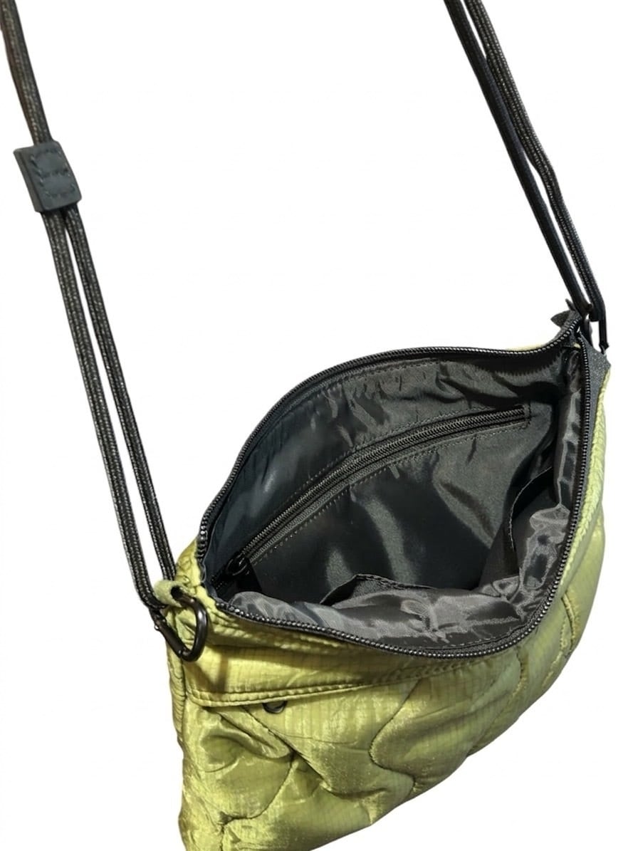 「SML」のキルティング素材のサコッシュです。80年代頃のデッドストックのキルティングライナーを使用し生産した商品で1点1点表情が異なります。普段使 いにちょうど良いサイズで、500mlボトルやロングウォレットも収納可能です。ショルダーの長さも結び目部分でスムーズに調節する事が出来ます。取り外すとバックインバックとしても使用できます。redadとのダブルネームコレクションで、80年代頃のアメリカ軍M-65フィールドカーゴパンツに装着するキルティングライナーを解体し、再構築したシリーズです。素材には非常に軽量なリップストップキルティングと、中綿には保温性の高いポリエステルが使用されています。その見た目からは想像できないほど軽く保温性に優れています。近年では見つかる事も少なくなっている貴重な素材となります。※本商品は80年代頃のデッドストックの未使用品の素材を使用していますが、長期保管時に生じた変色やステッチのほつれ・傷・汚れ、製造ロットの違いにより色合いが異なります。不良品ではございませんのでご理解頂きました上でご購入お願いいたします。