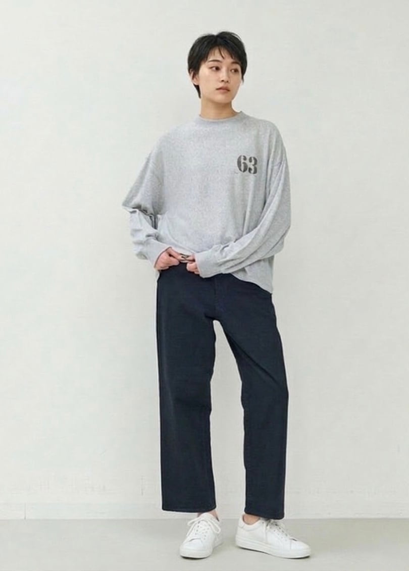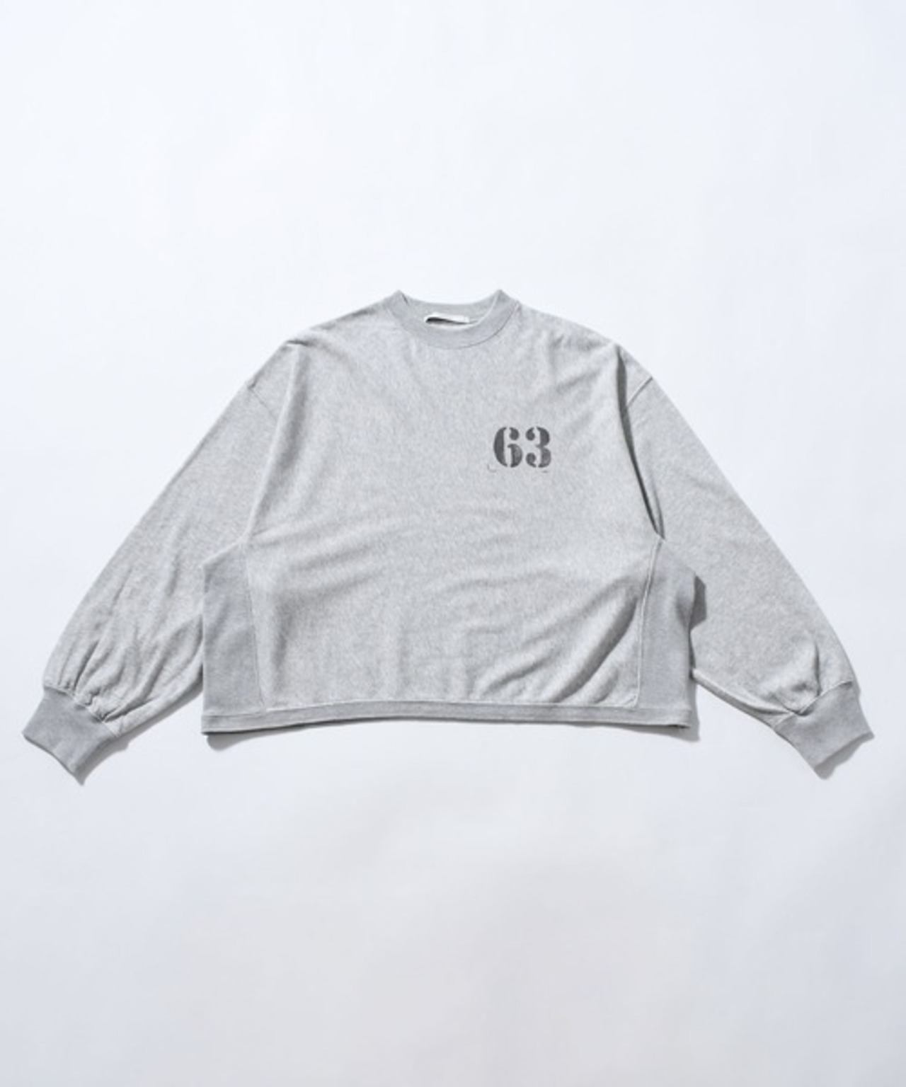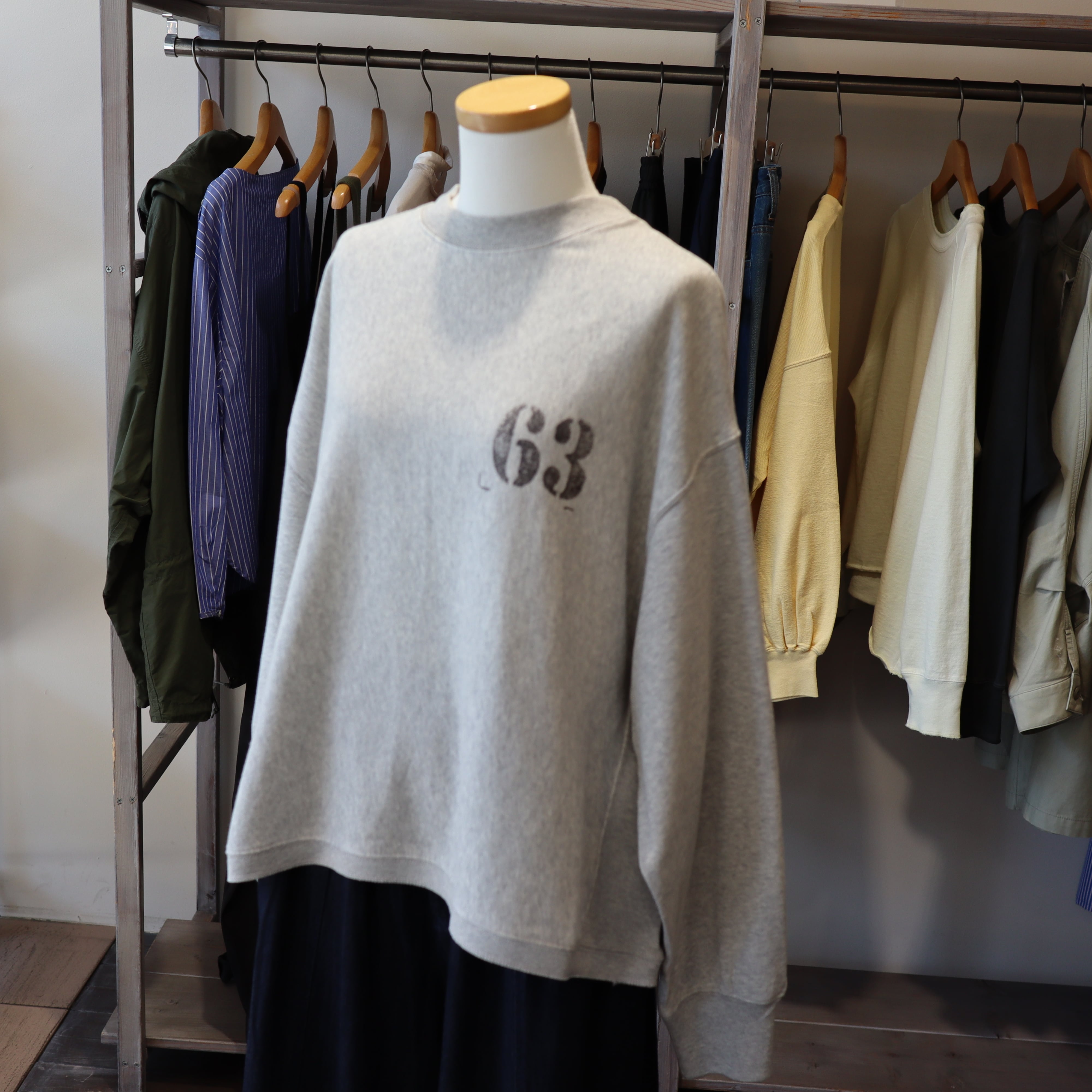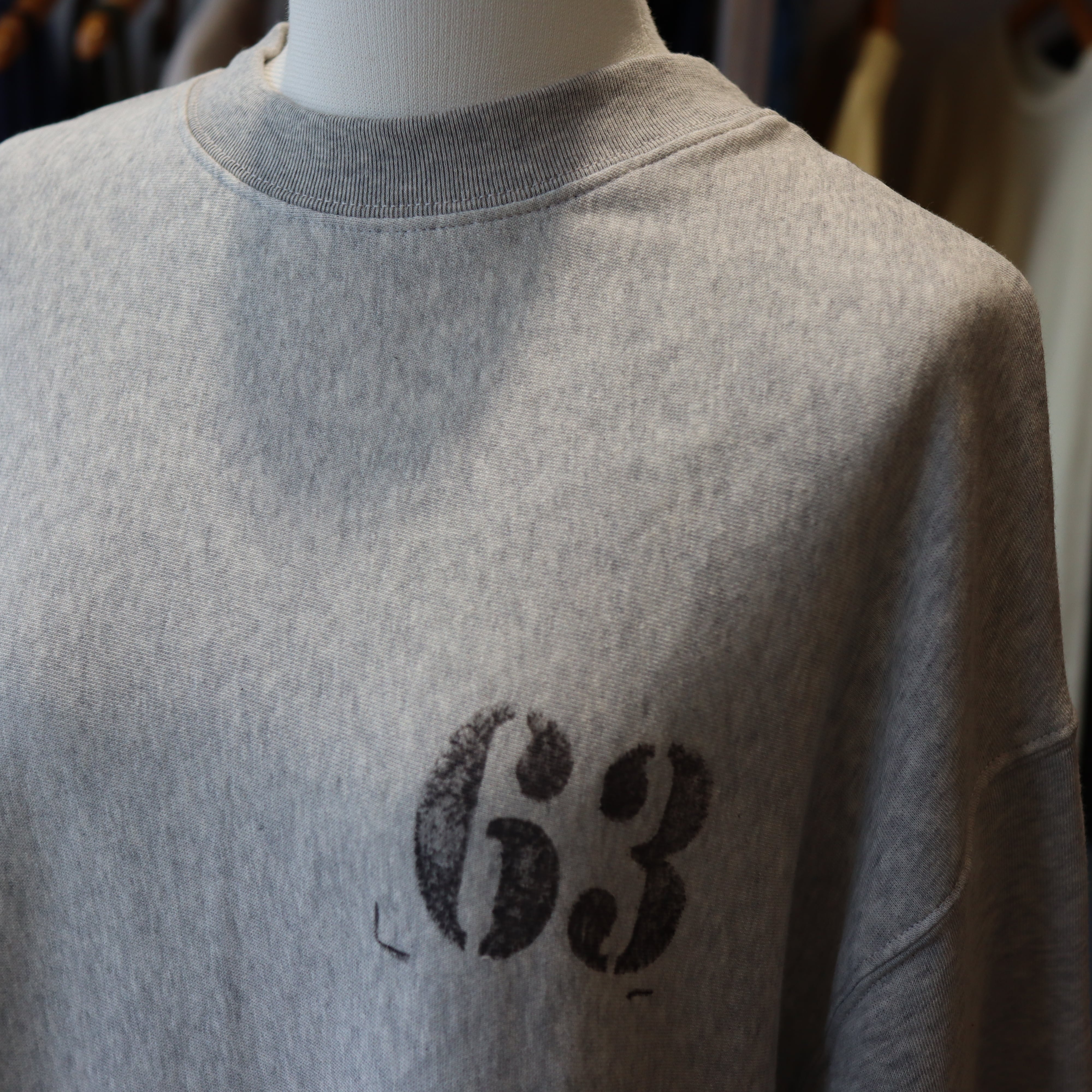 「JHON BULL 2026 Spring」ガーゼの様に柔らかく肌触りの良いミニ裏毛素材のモックネックのスウェットプルオーバーです。少しドルマンスリーブのようなデザインでゆったりとしたアームホールでストレスを感じない着心地です。ややワイドなデザインですが短めの着丈でスッキリ見えます。ワイドパンツやロングスカートなどボリュームの有るボトムとの相性が良さそうです。ナンバースタンプは一点一点手押ししており、位置やカスレ具合等個体差がございます。手仕事の味わいをお楽しみください