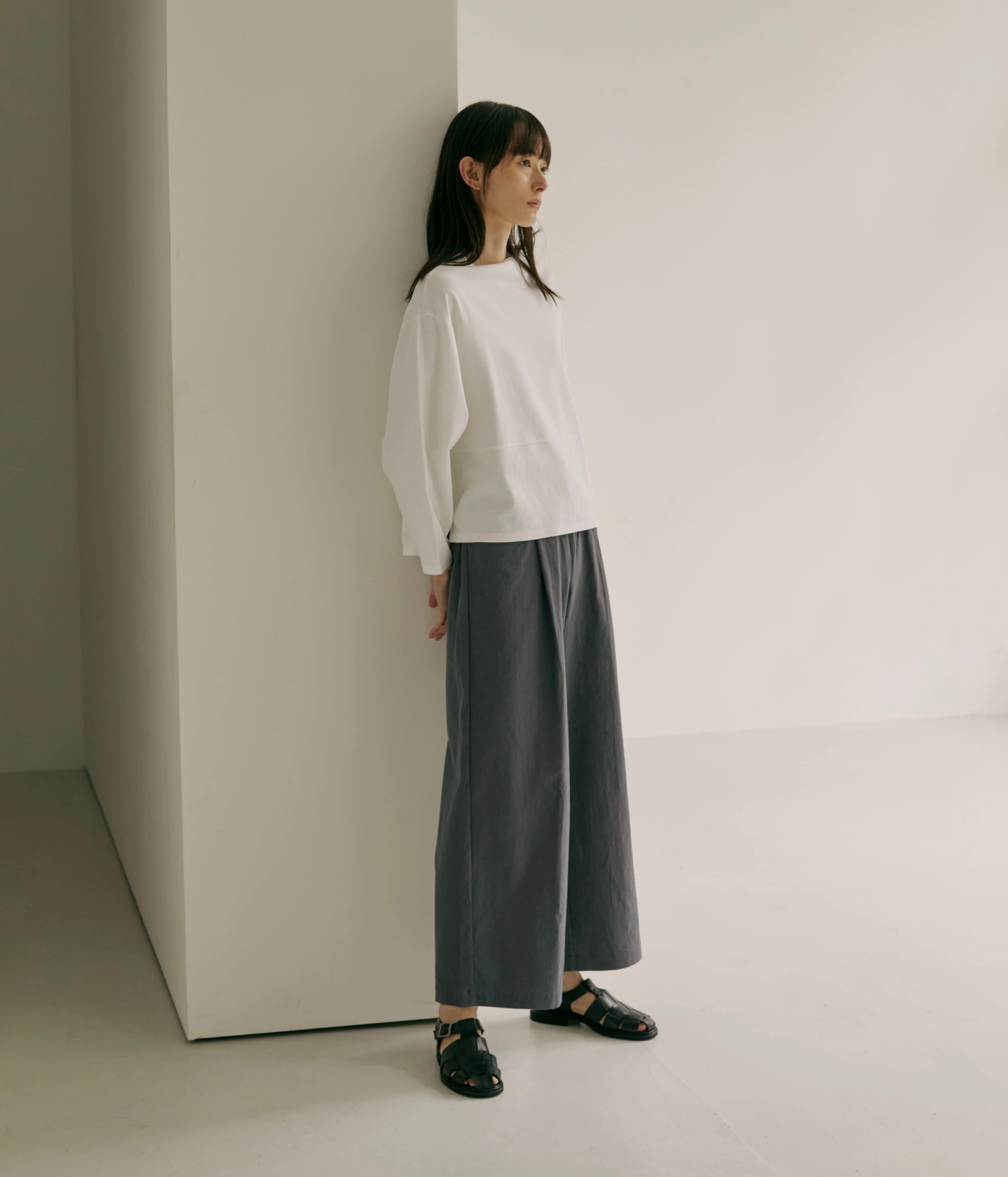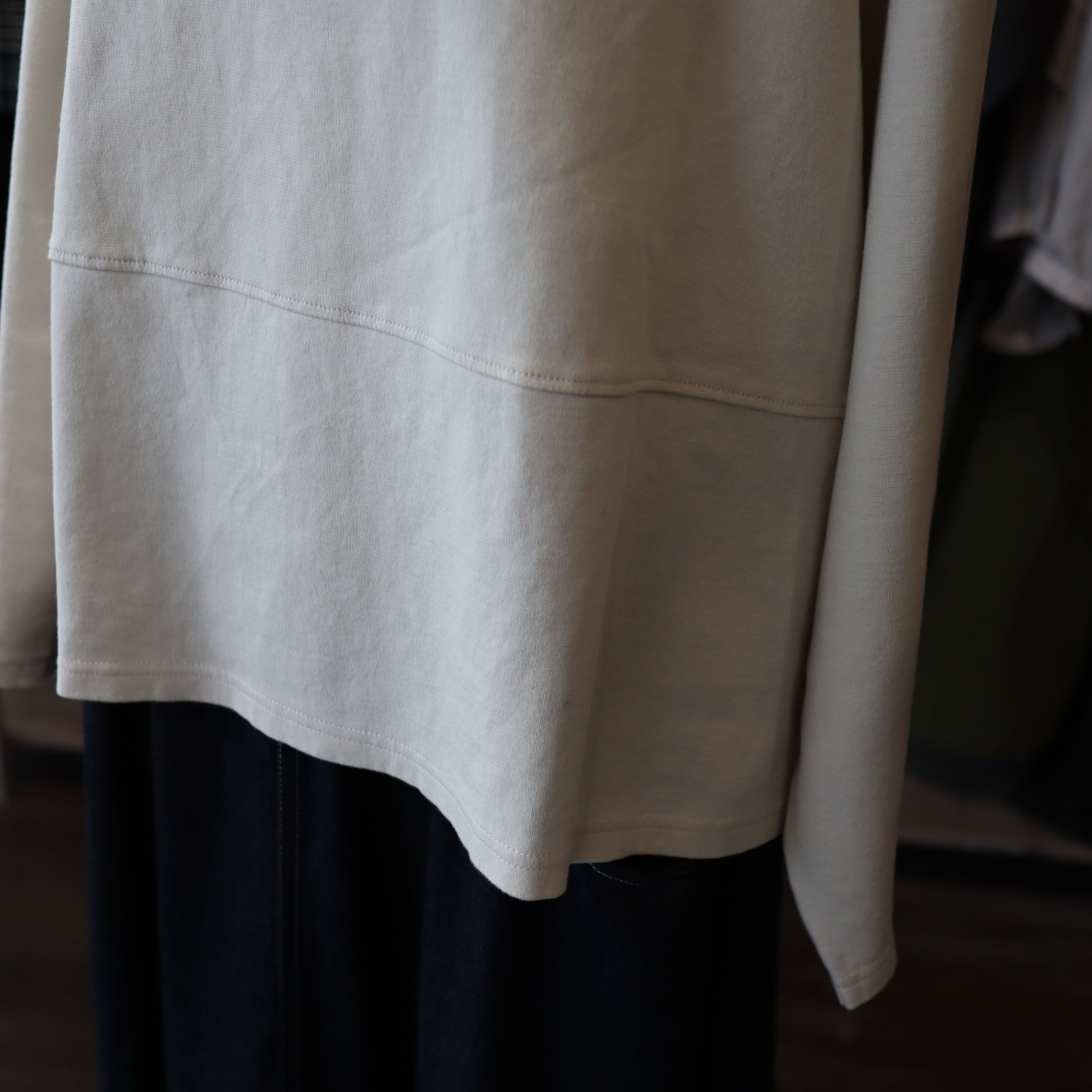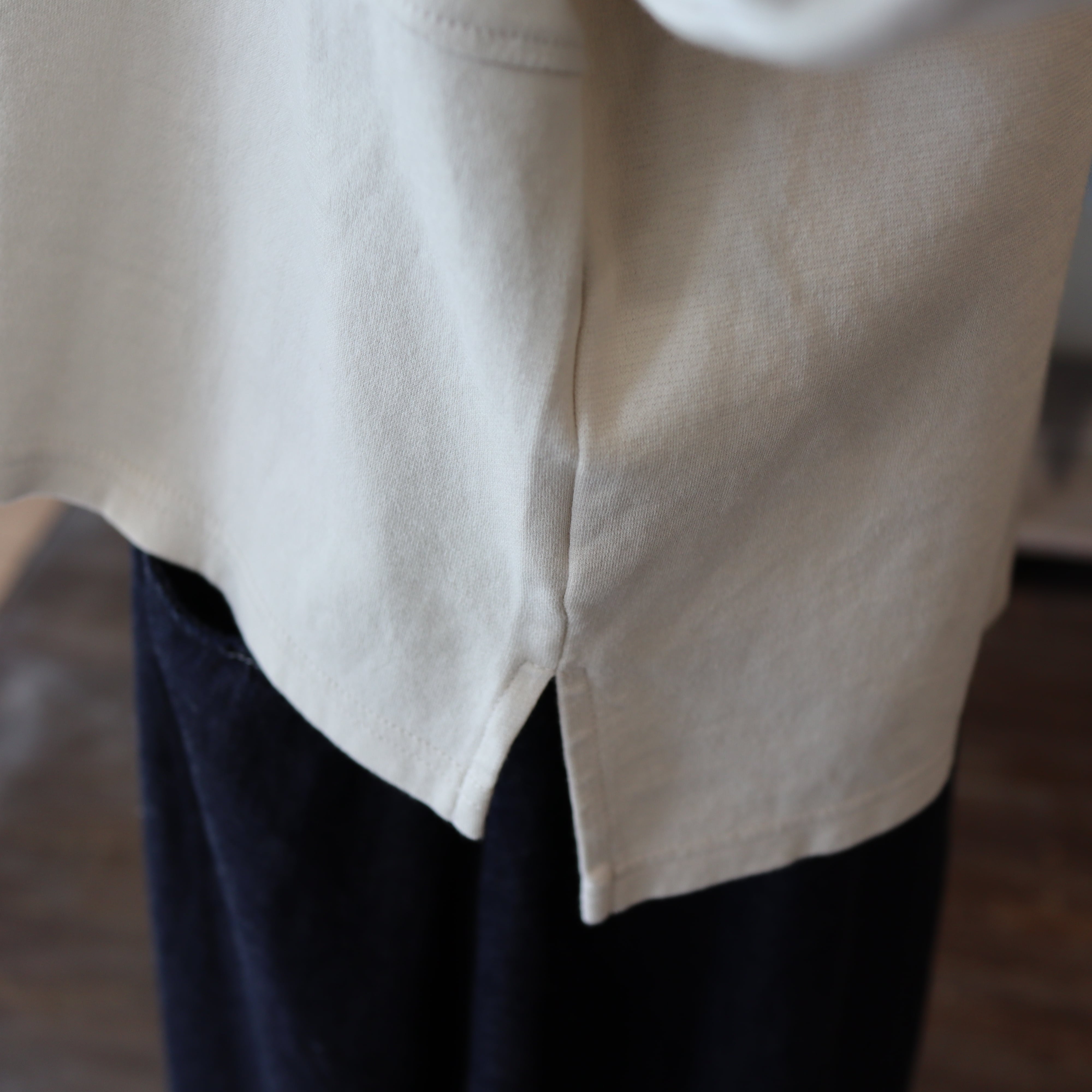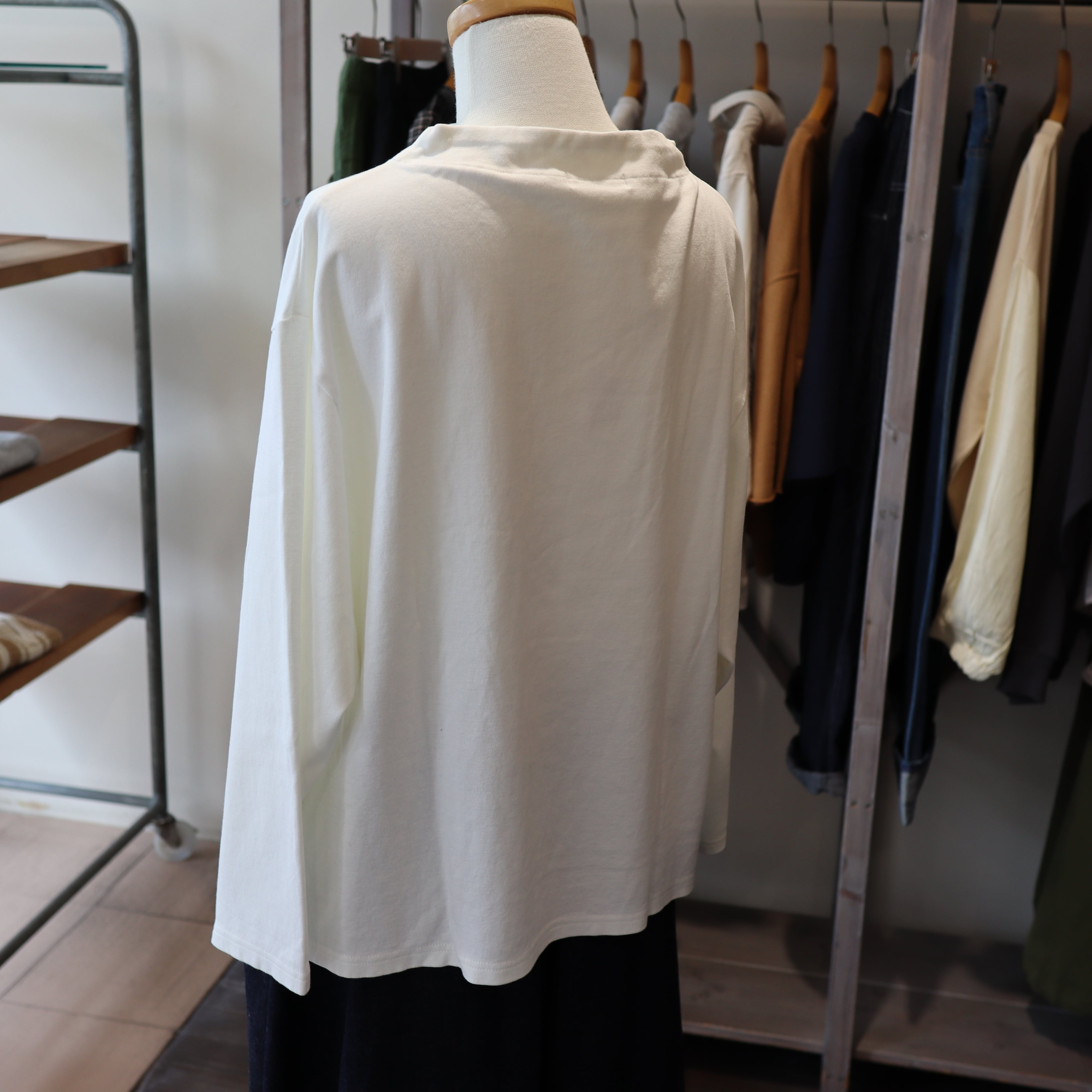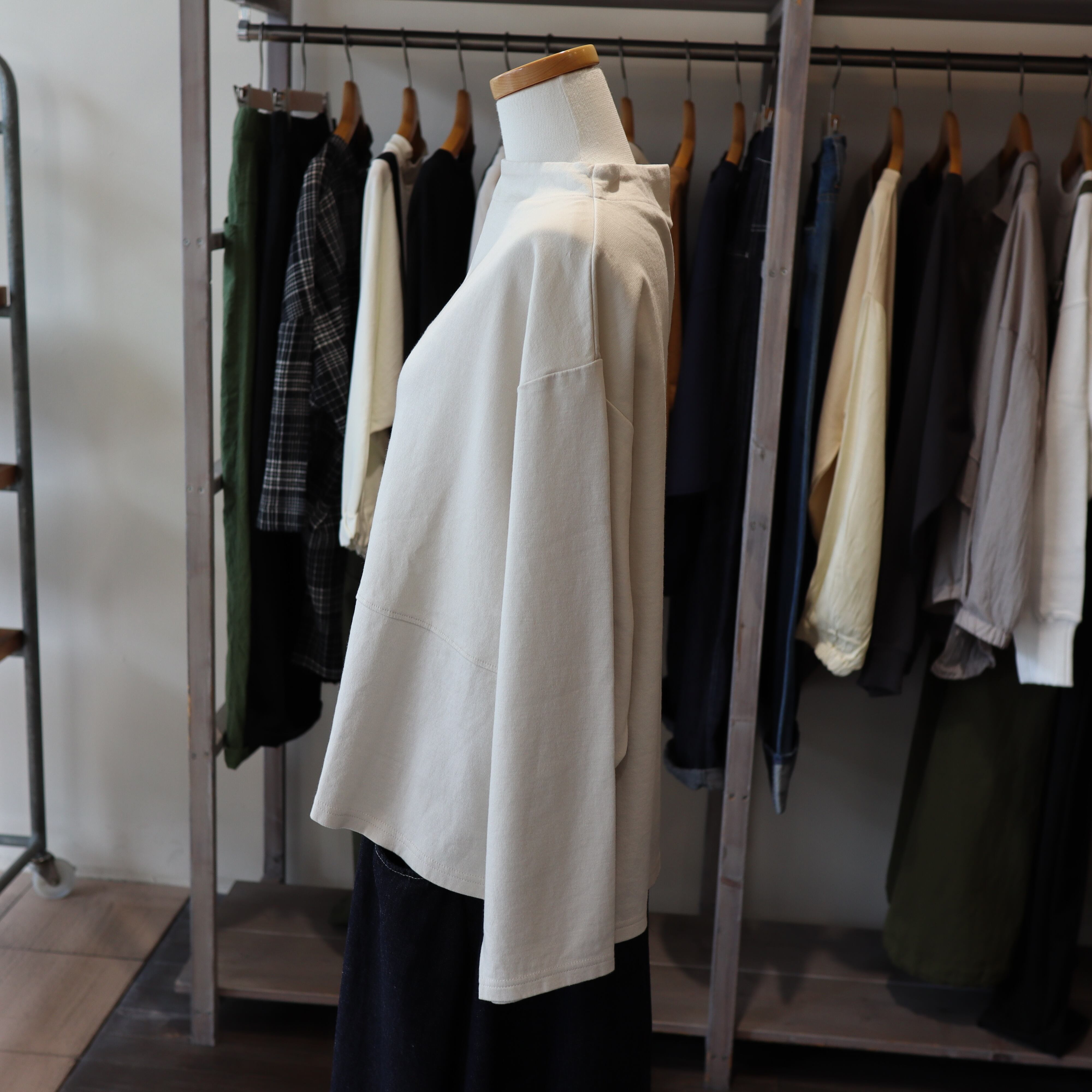 「commenncemennt c286」程良く立ち上がる様にデザインされたボトルネックはカジュアルな中にも大人のエレガンスな雰囲気あり、ハイネックに比べ首元に抜け感が有り小顔効果が期待できるのもポイントです。中肉の伸びが良い綿素材で着心地も抜群です。アームホールもゆったりめでストレスフリーです。スッキリした着丈で色々なボトムに合わせやすそうです。安心の「Made in Japan」