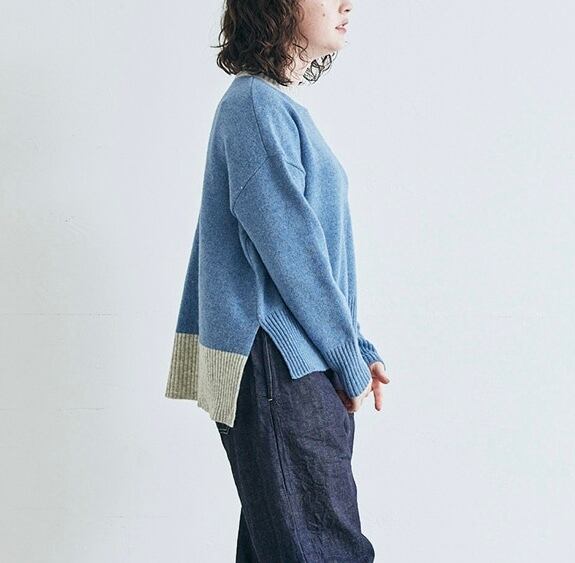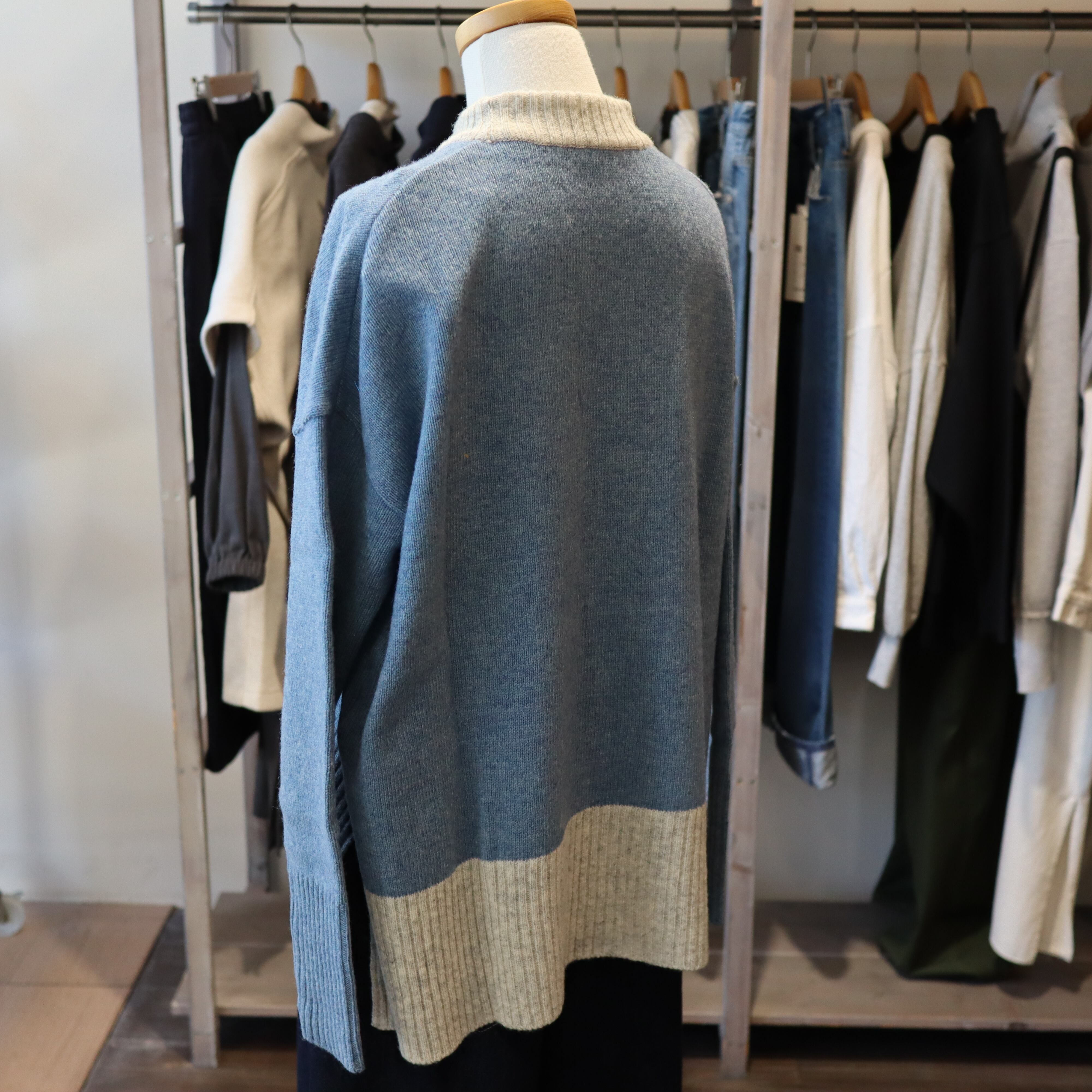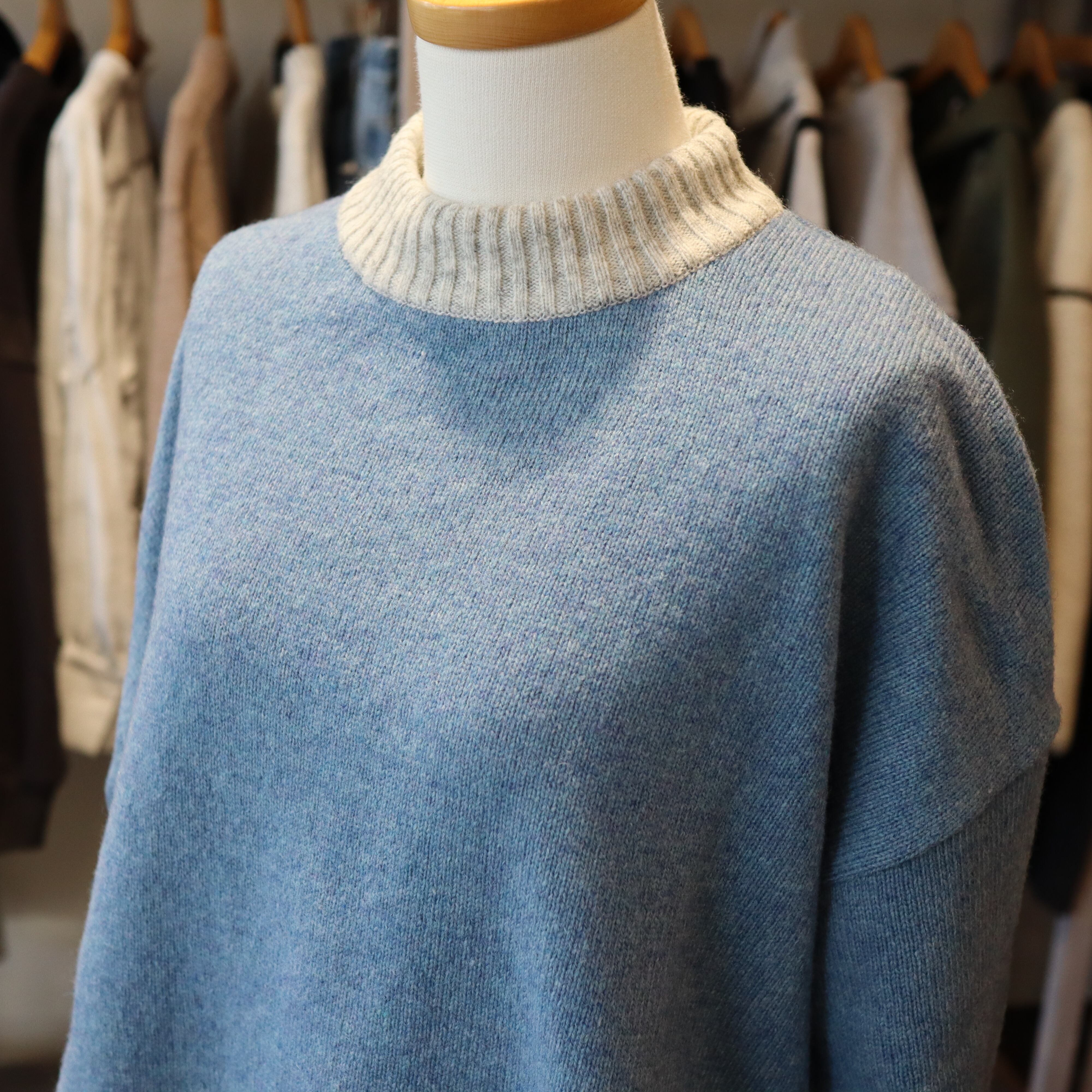 「NARU 647610」毛質の柔らかいラムウールを使い中肉厚で使いやすい7ゲージの天竺編みのニットです。ハイネックの首元とバックの裾を配色に切替えシンプルなデザインですがどこかノスタルジックでオシャレな印象です。ゆるめなサイズ感ですが細身な袖やサイドスリットなどスッキリ見えそうです。ウールを85%使っているので温かいです。手洗い可能なイージーケアな点も嬉しいポイントです。安心の「Made in Japan」