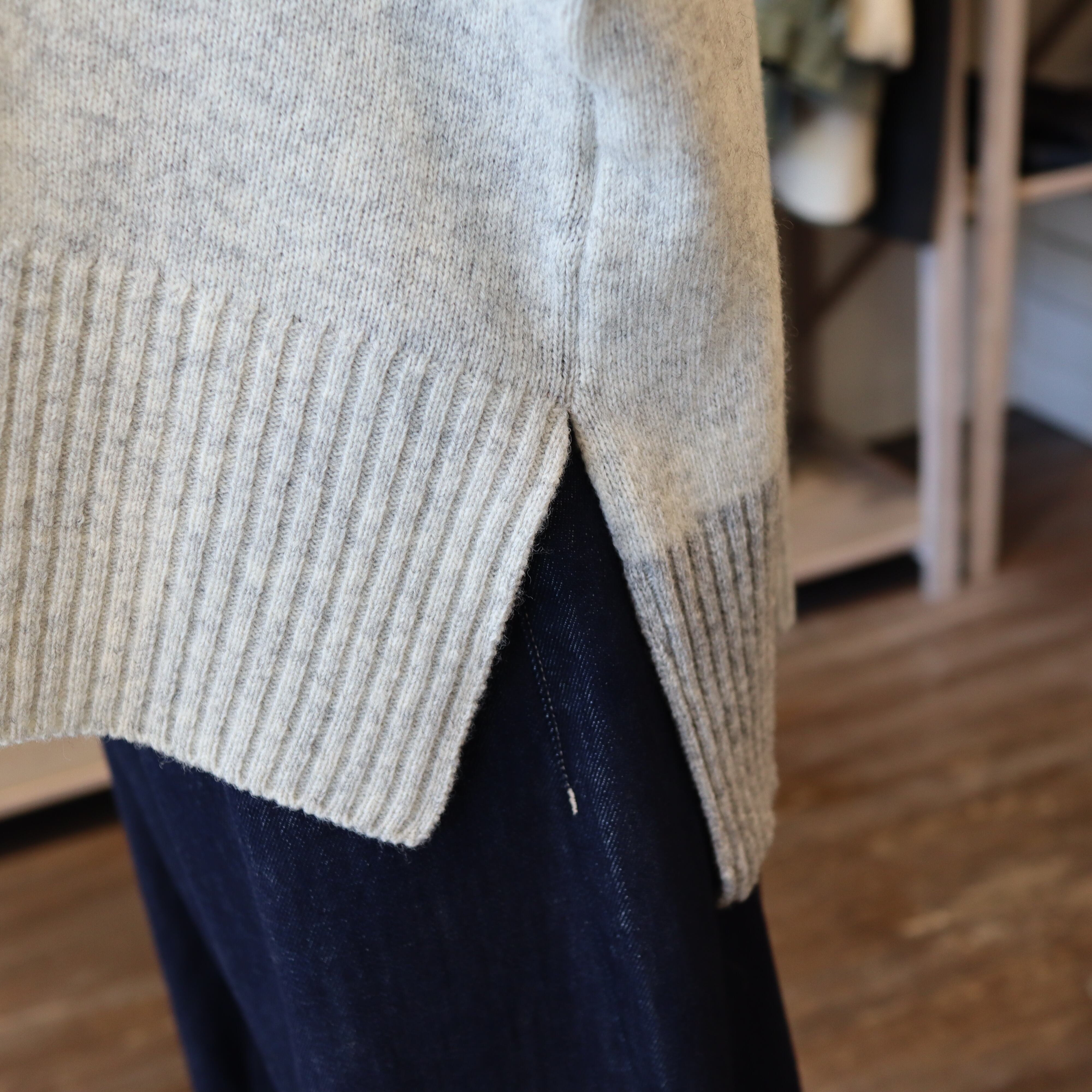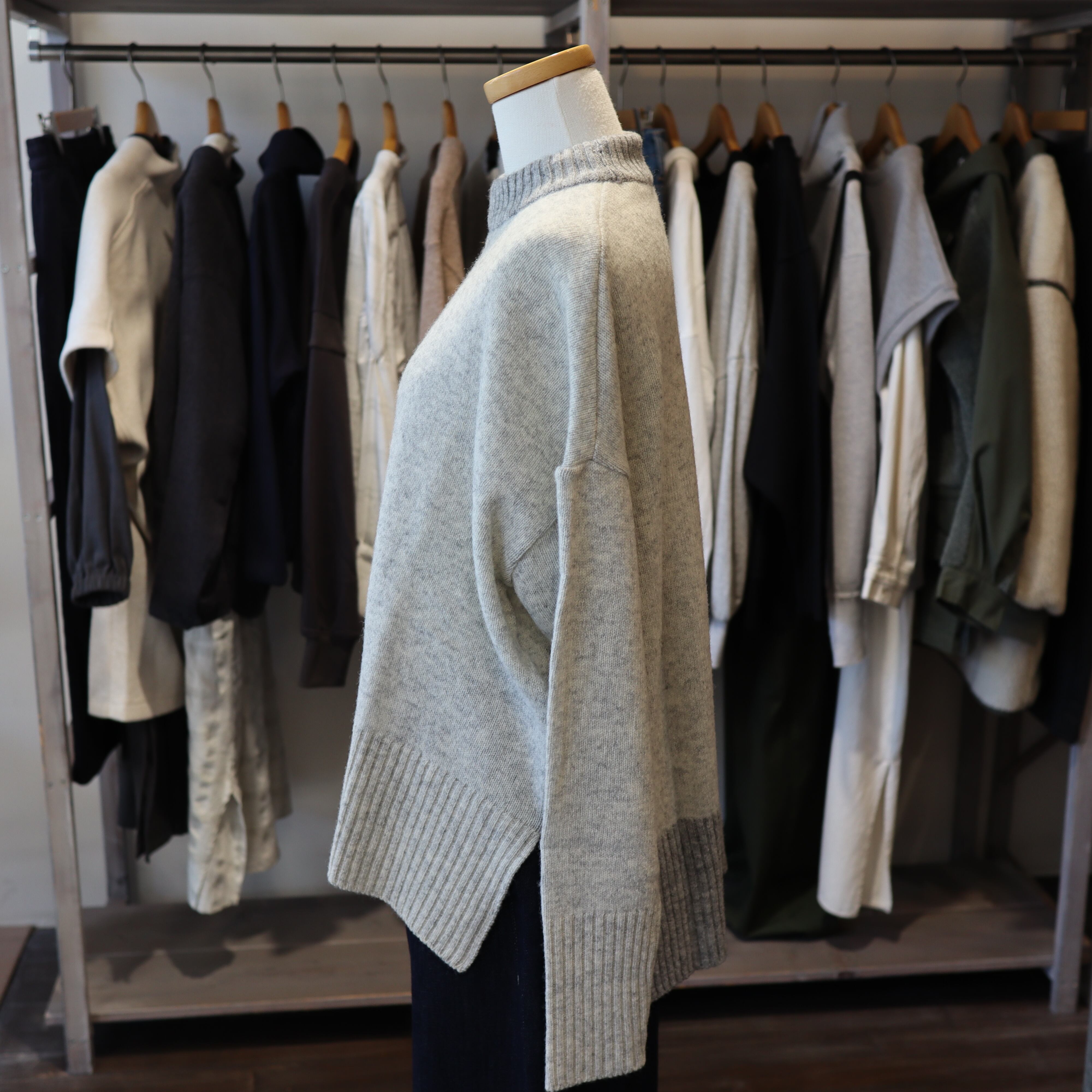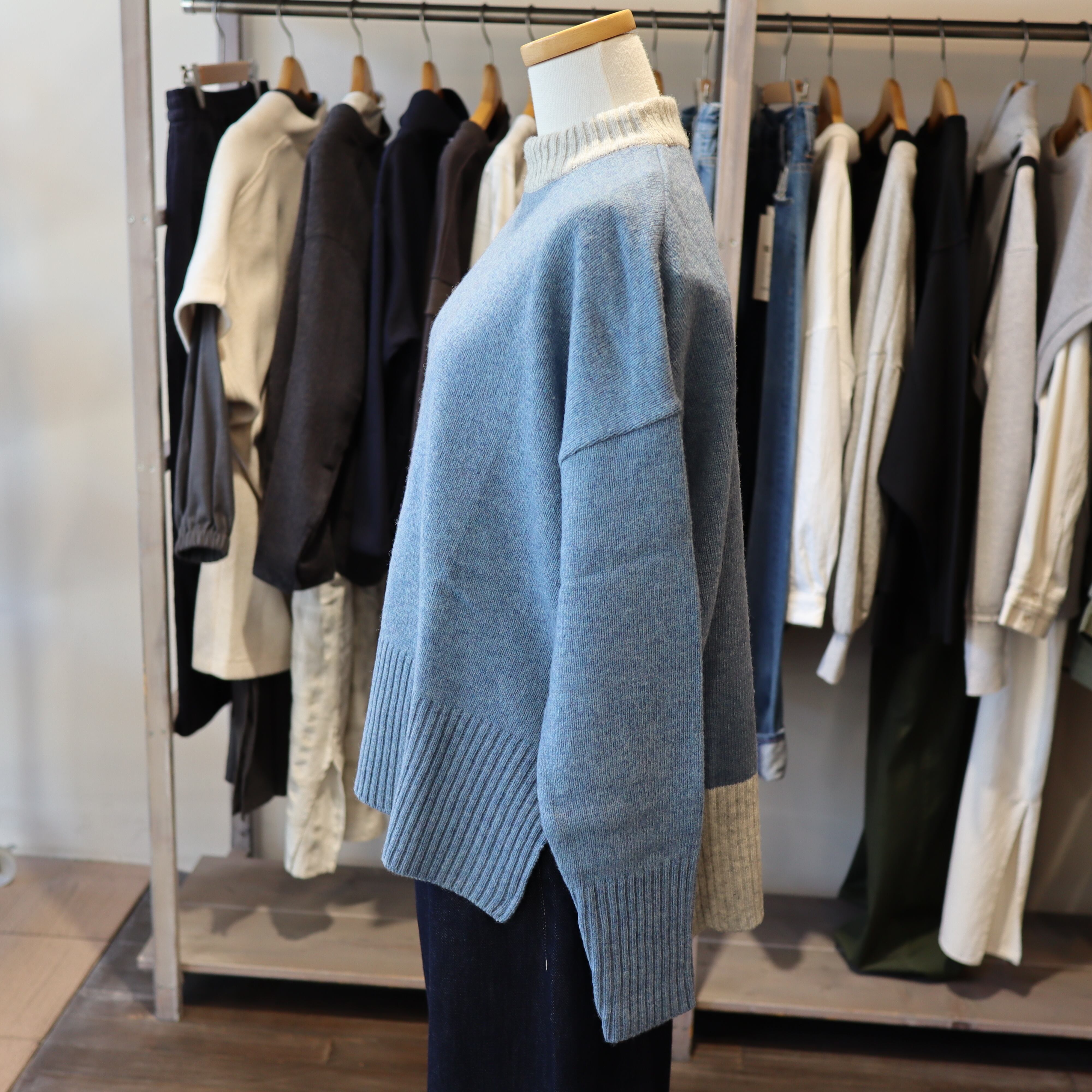 「NARU 647610」毛質の柔らかいラムウールを使い中肉厚で使いやすい7ゲージの天竺編みのニットです。ハイネックの首元とバックの裾を配色に切替えシンプルなデザインですがどこかノスタルジックでオシャレな印象です。ゆるめなサイズ感ですが細身な袖やサイドスリットなどスッキリ見えそうです。ウールを85%使っているので温かいです。手洗い可能なイージーケアな点も嬉しいポイントです。安心の「Made in Japan」